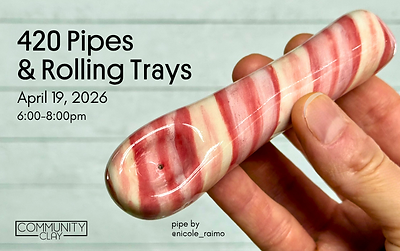 Join us and make your own pieces of functional art! This workshop is beginner friendly and utilizes hand-building techniques and under glazes to design and decorate a usable pipe and rolling tray. Design and decorate a pipe, then make a rolling tray to match!
